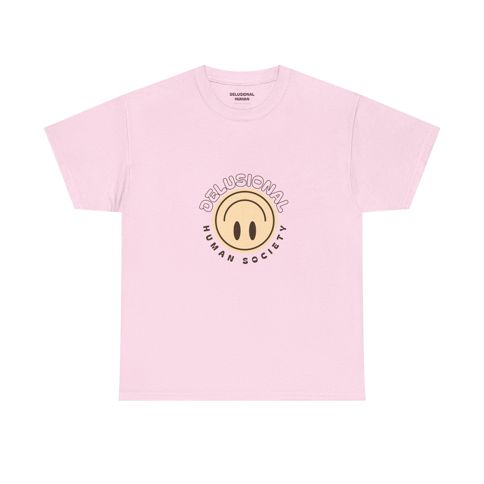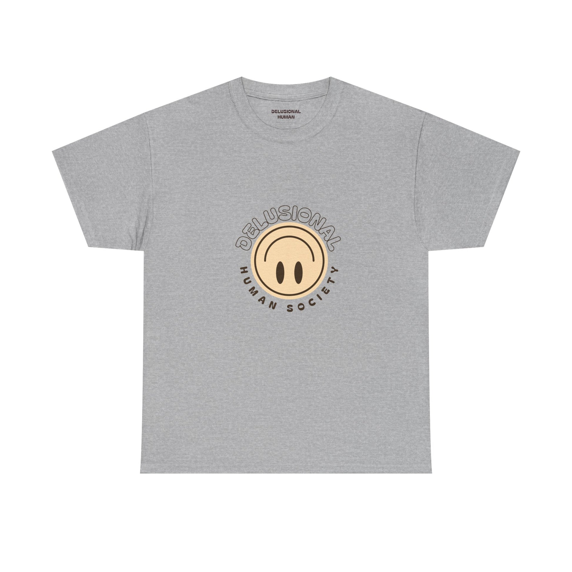 A soft, naturally colored cotton tee that feels like a quiet morning walk. The front carries a small, subtle logo while the back blooms with a friendly daisy and the phrase “DelUsional Human Society,” blending playful irony with gentle charm. Lightweight but sturdy, it wears in comfortably and keeps its shape through washes. Wear it on slow weekends, at meet-ups with fellow weirdos, or layered under a jacket for low-key outings — it’s the kind of shirt that says you don’t take yourself too seriously, but you care about comfort and craft.